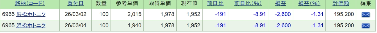 大幅続落のホトニクスを100株1940円で買い増しです。