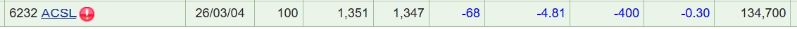ドローン銘柄のACSLを100株。戦争を見て、今後の戦争の主役になると感じました。
