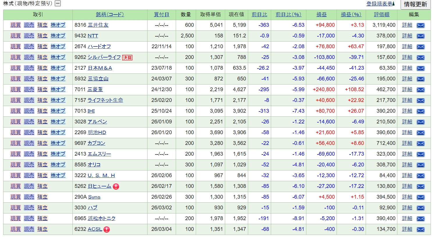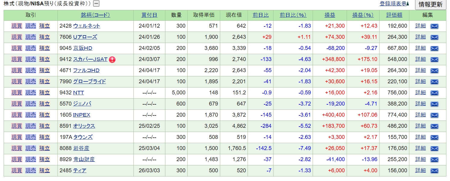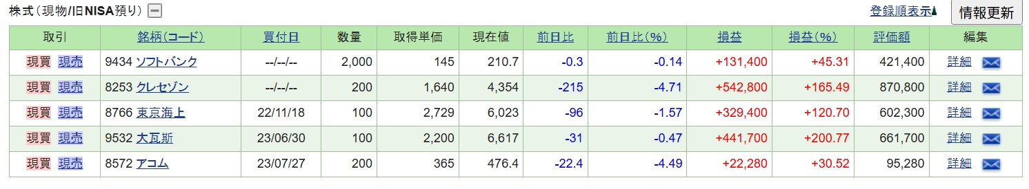 他にも欲しい銘柄があったのですが、分散購入の予定の為本日は見送りです。日経平均5万割れぐらいの地獄モード突入になればあれこれ買えると思うのですが。ちなみに今日はオリコの買い増しはしていません。