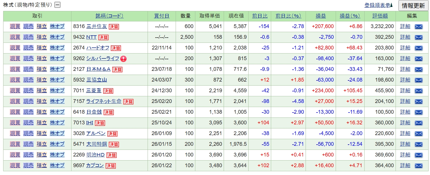 本日は日経平均961円安で、保有株もそこそこ含み益を蒸発させております。