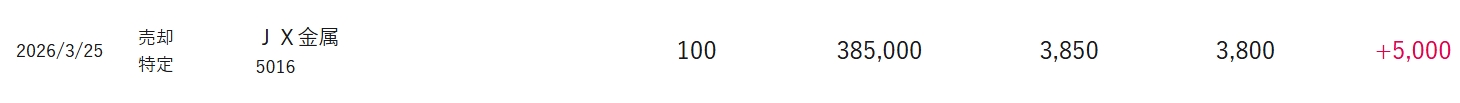 25日のPTSの取引でJX金属を売却に成功しました。