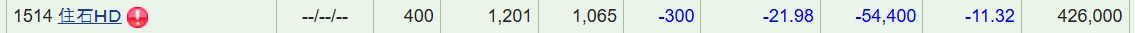 住石ホールディングスが前場にS安になっていたのを見てそのまま用事で外出したのですが、帰宅後の後場では上昇を初めていたのを見つけてついつい購入してしまい。本日見事に逃げ遅れて持ち越してしまいました。