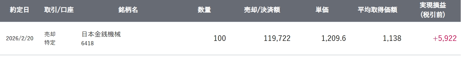 1年前ぐらいに購入して含み損になり、配当をもらいつつ保有を続けた日本金銭機械の株を本日売却しました。