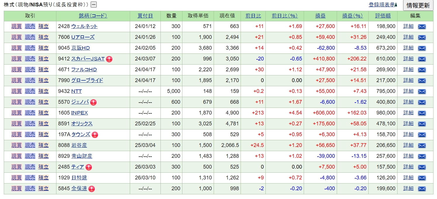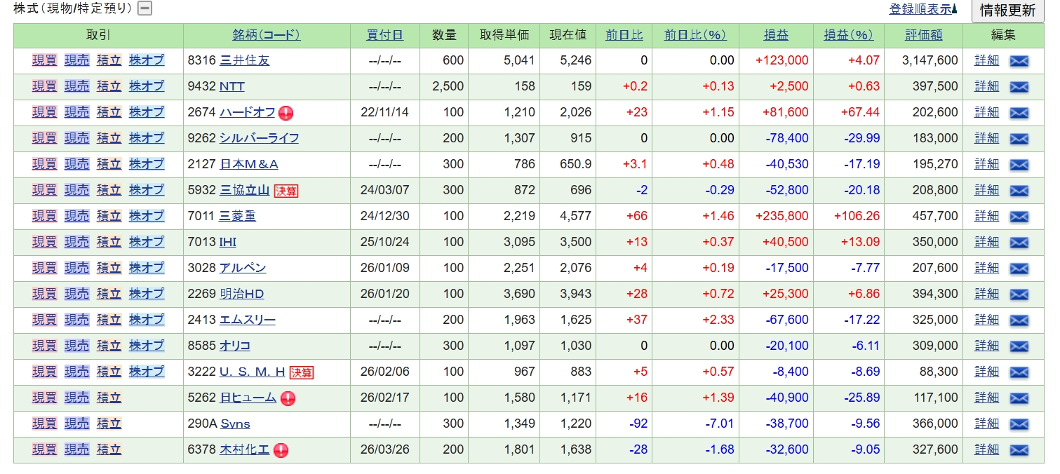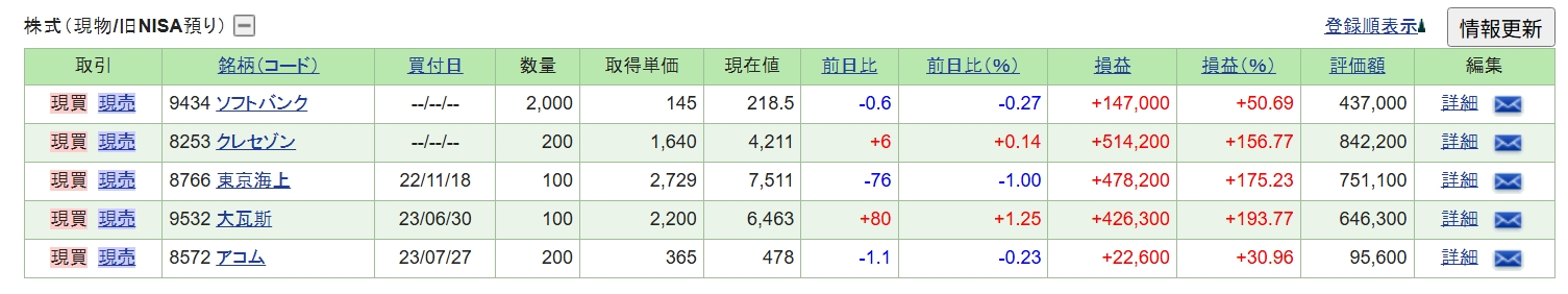 週末の保有株の状況です