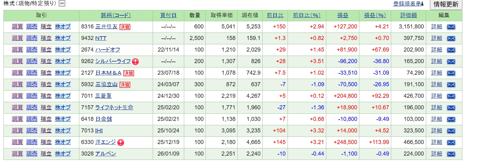 IHIの購入価格が3095円と高いので、一旦売却してもっと安く拾い直そうかと考えていましたが、今回は見送りました。