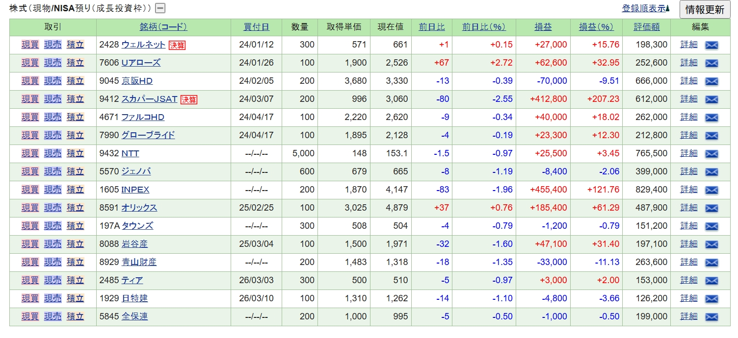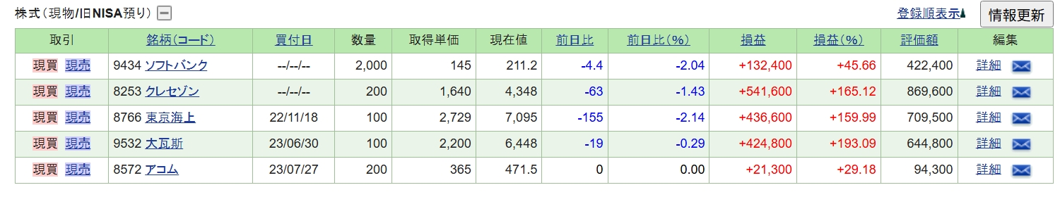それでは、保有株の状況です。