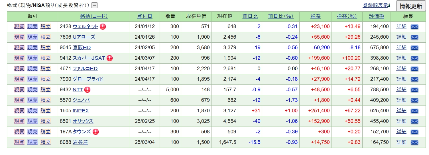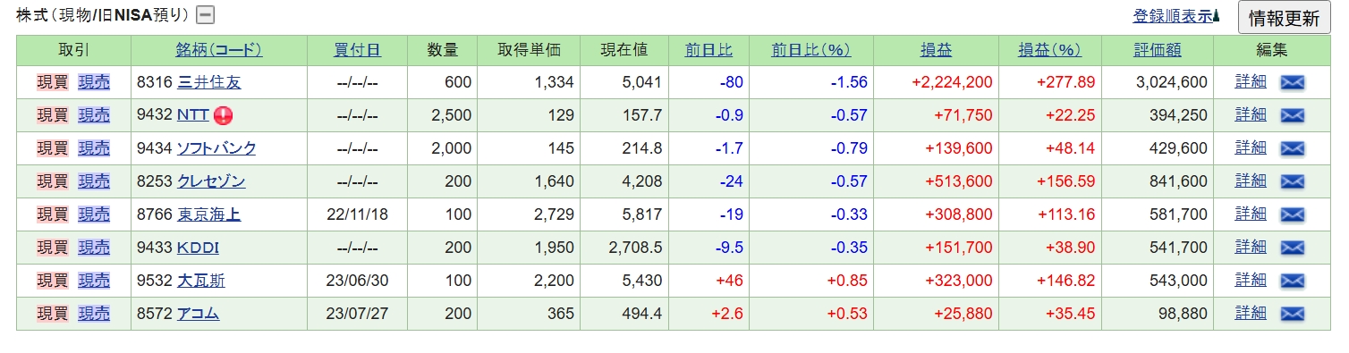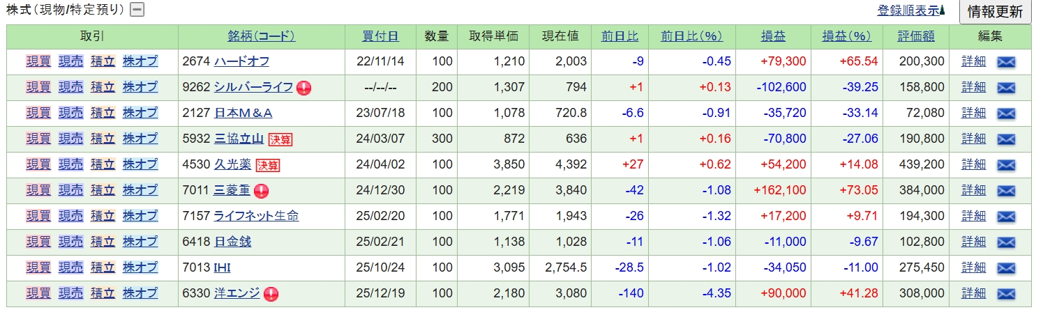 そして、現在の保有銘柄の公開です。
