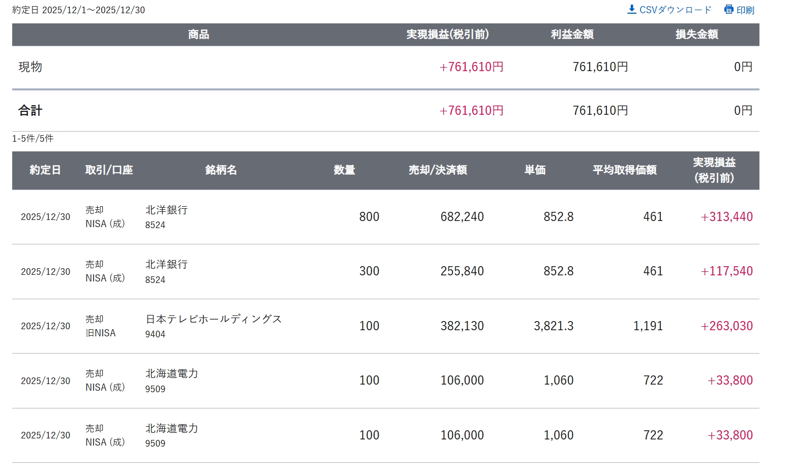 本日の大納会にて、久しぶりの売り注文を出して利益を確定しました。