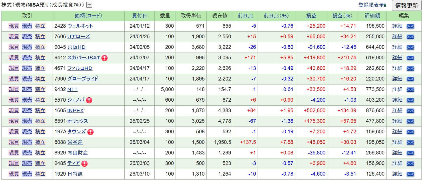 終値639.2円で年間配当が29円予定で配当利回りが4.54%あるので高配当銘柄になります。昔は1年保有すると米5Kgが優待として貰えたのですが、貰う事なく優待が廃止されてしまったまま100株を保有中の悲しい銘柄でもあるのですが、今回は高配当株化した事もあり改めて買い増ししました。